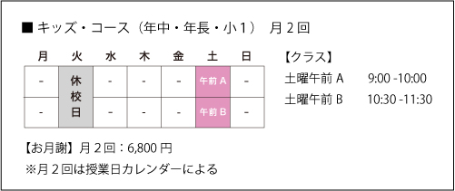 ・ジュニア月3回コースは授業日カレンダーの第1・2・3週目が授業日です。