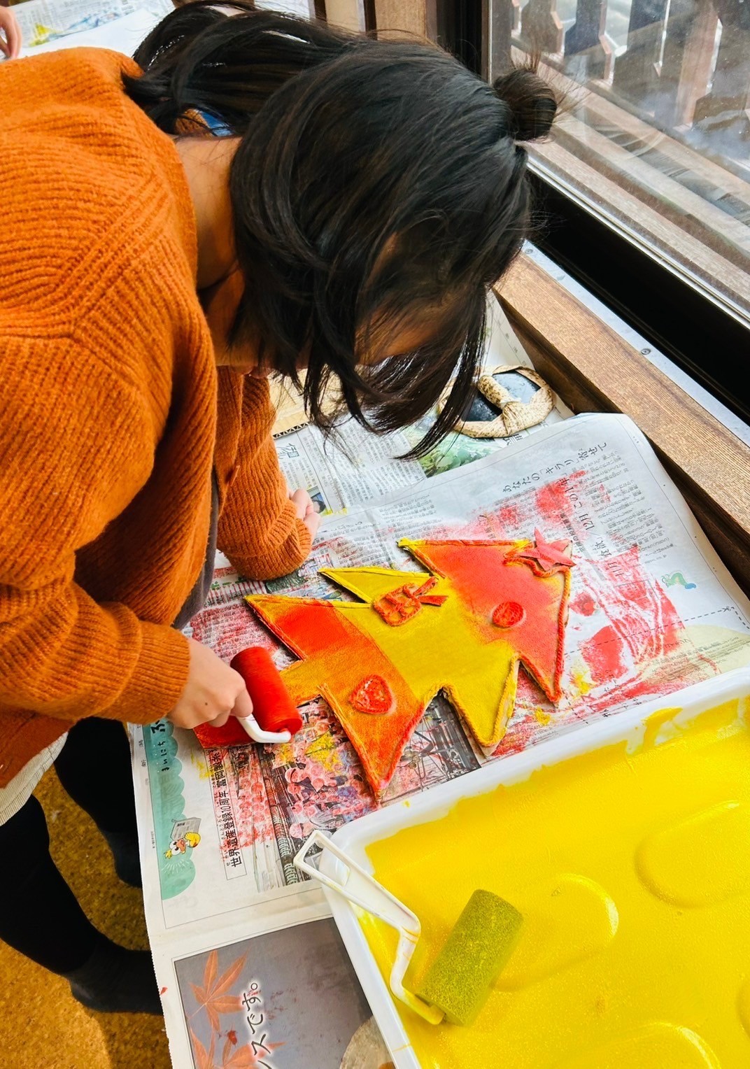 感触がさまざまな素材を組み合わせて、コラージュ版画のクリスマスツリーを作ってみませんか?